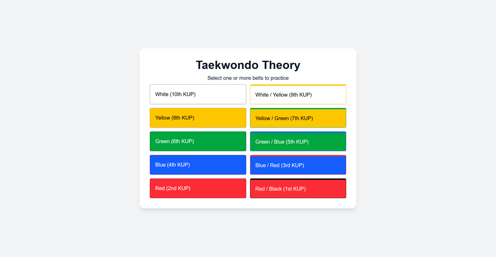 An interactive revision platform that helps Taekwondo students learn theory through quizzes and structured study tools.